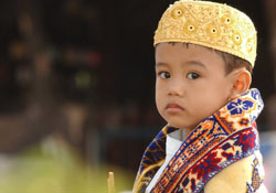 人口:2.17億(2004年),是世界第四人口大國(guó),有100多個(gè)民族。其中爪哇族占45%,巽他族占14%,馬都拉族7.5%,馬來(lái)族7.5%,其他26%。官方語(yǔ)言為印度尼西亞語(yǔ)。民族語(yǔ)言和方言約300種。約87%的居民信奉伊斯蘭教,是世界上穆斯林人口最多的國(guó)家,6. 1%的人口信奉基督教新教,3. 6%信奉天主教,其余信奉印度教、佛教和原始拜物教等。