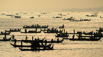 自然地理:面積為181035平方公里。位于東南亞中南半島南部,北界老撾,西北部與泰國為鄰,東和東南部與越南接壤,西南瀕泰國灣。海岸線長460公里。中部和南部是平原,東部、北部和西部被山地、高原環(huán)繞,大部分地區(qū)被森林覆蓋。豆蔻山脈東段的奧拉山海拔1813米,為境內(nèi)最高峰。湄公河在境內(nèi)長約500公里,流貫東部。洞里薩湖是中南半島的最大湖泊,低水位時面積2500多平方公里,雨季湖面達(dá)1萬平方公里。沿海多島嶼,主要有戈公島、隆島等。屬熱帶季風(fēng)氣候,年平均氣溫29—30℃,5—10月為雨季,11月—次年4月為旱季,受地形和季風(fēng)影響,各地降水量差異較大,象山南端可達(dá)5400毫米,金邊以東約1000毫米。