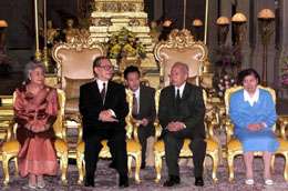 國家政要:新 國王諾羅敦·西哈莫尼 (Norodom Sihamoni),2004年10月就任; 首相洪森 (Hun Sen) ,2004年7月任職;國民議會議長諾羅敦·拉那烈 (Norodom Ranarith),2004年7月當(dāng)選;參議院議長謝辛 (Chea Sim),1999年3月任職。 前國王諾羅敦·西哈努克(Norodom Sihanouk),2004年10月7日宣布退位。