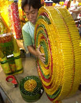 菲律賓人迎接新年時(shí)有燃放煙花爆竹的傳統(tǒng)。圖為一名菲律賓商販在博卡韋整理一卷鞭炮。 |