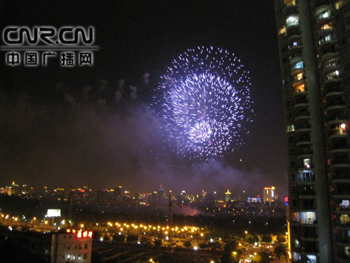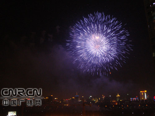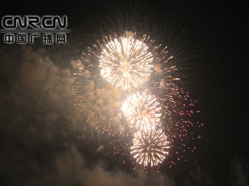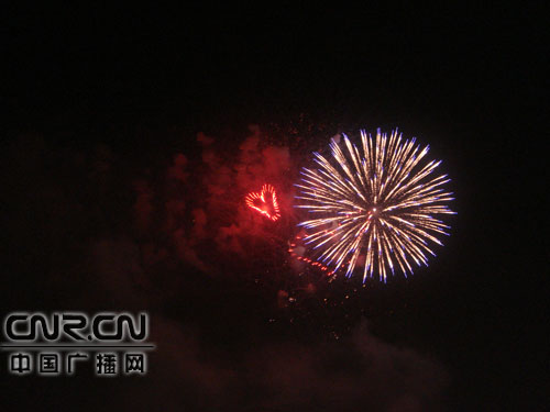 中廣網(wǎng)南寧10月1日消息 (實(shí)習(xí)記者 申麗華)10月1日晚,廣西首府南寧市南湖廣場上空綻放出絢麗的煙花,七彩的花束、綻放的笑臉、紅艷的五角星、碩大的中國版圖、一顆顆相串連的愛心……伴隨著一聲聲轟隆隆的炮響,邕城夜空瞬間變得五彩斑斕。上萬南寧市民涌向南湖公園,共享這璀璨奪目、美輪美奐的空中美景,共慶祖國六十華誕。