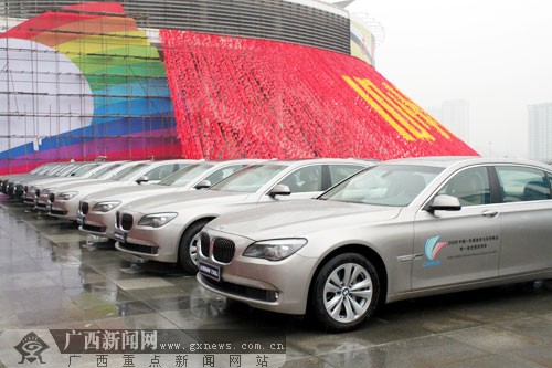 作為第六屆中國(guó)-東盟商務(wù)與投資峰會(huì)指定貴賓接待用車的11輛BMW 730Li轎車。(來(lái)源:廣西新聞網(wǎng))