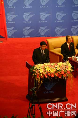 老撾總理波松演講(中廣網(wǎng)記者董雯 攝)