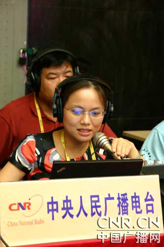 中央臺主持人馮雅正在直播(中廣網(wǎng)記者董雯 攝)