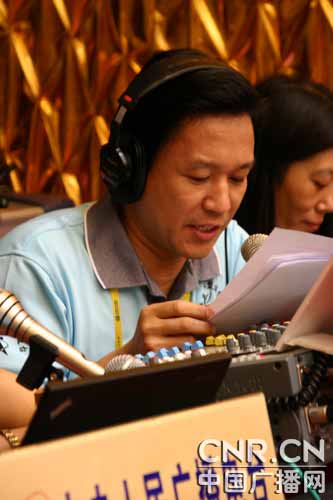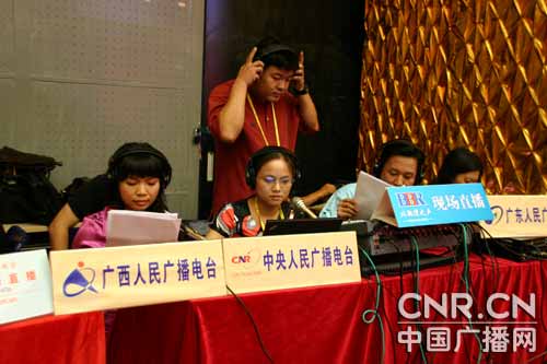 廣西臺主持人金迪正在直播(中廣網(wǎng)記者董雯 攝)