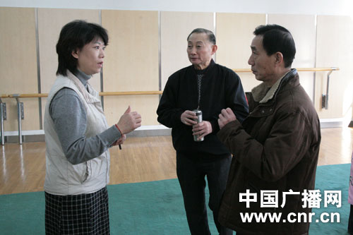 梅葆玖先生與戲曲導(dǎo)演孫愛青在晚會(huì)演出節(jié)目響排現(xiàn)場(chǎng)(李曉東 攝)