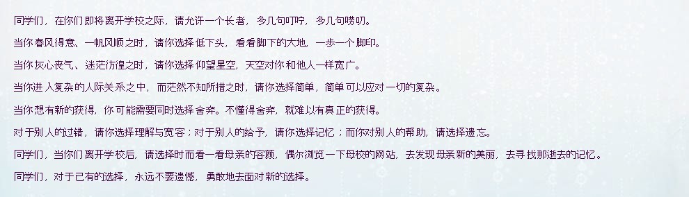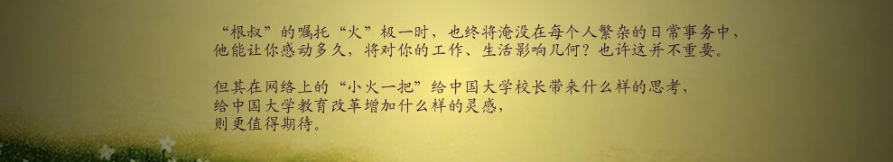 在華中科技大學(xué)2010屆本科生畢業(yè)典禮上,校長(zhǎng)李培根院士16分鐘的演講,被掌聲打斷30次。在2000余字的演講稿中,李培根把4年來(lái)的國(guó)家大事、學(xué)校大事、身邊人物、網(wǎng)絡(luò)熱詞等融合在一起,打動(dòng)了畢業(yè)學(xué)子們的心。在發(fā)言中,全場(chǎng)7700余名學(xué)子起立親切的高喊:“根叔!根叔!”