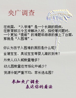 嬰兒潮加重“入園難”:據資料顯示,2007年至2009年,北京市的新生兒有41.575萬人。他們將從2010年開始陸續(xù)地進入幼兒園。而從2009 年北京市合法幼兒園的在園人數來看,北京能提供的幼兒園學位數約為24.8萬人。這意味著,北京的幼兒園學位缺口,約為17萬名。