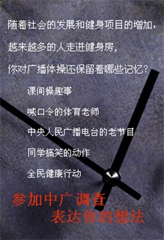 8分鐘,你能做些什么?匆匆的一頓早餐,與客戶的幾句寒暄,看韓劇的幾個(gè)鏡頭,魔獸爭(zhēng)霸壘幾個(gè)箭塔,抑或只是做個(gè)白日夢(mèng)……8分鐘,是北京規(guī)定恢復(fù)廣播一套完整體操的時(shí)間。 擁有59年歷史的廣播體操在北京中斷3年后,回歸到部分人的生活,它還會(huì)像過去一樣必要么?如此“一場(chǎng)秀”或者只是喚起了一些人的記憶而已。 |