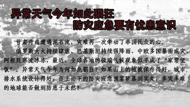 俄羅斯大火持續(xù)肆虐、巴基斯坦持續(xù)強降雨、中歐多國暴雨成災、阿根廷寒流冰凍,最近,全球各地的極端氣候現(xiàn)象似乎成了“家常便飯”。異常天氣今年為何如此猖狂?多災多難的地球能否做到防患于未然? <詳細>