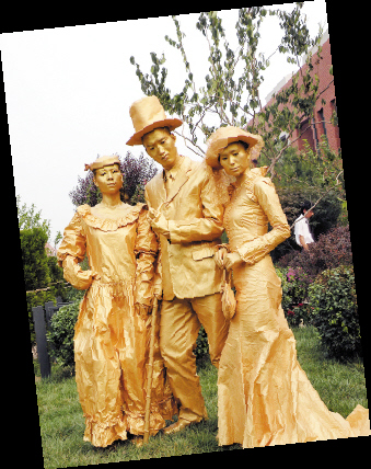 這次大型游園會將首次引進活體雕塑藝術(shù)展。這種起源于西方的行為藝術(shù)是通過真人涂繪達到雕塑的逼真效果,并配以肢體語言向人們展示其藝術(shù)內(nèi)涵。此次在水上公園進行表演的是在京城享有盛名的北京文海藝術(shù)中心活體雕塑藝術(shù)表演團。游園會期間將表演“彈吉他的藝人”、“金色美人魚”、“亞當和夏娃”、“西部牛仔”、“白色騎士”等節(jié)目。