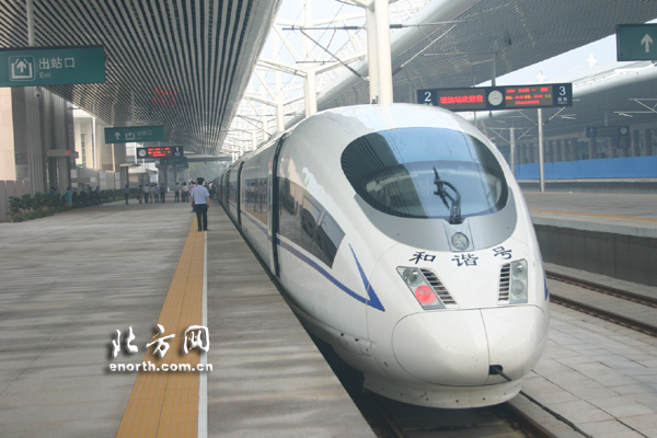 9月17日早上8點13分,京津城際高速鐵路試驗車緩緩駛?cè)胩凉粱疖囌,按照預定計劃?吭1號站臺,鐵路工作人員按照正常車輛?窟M行接站,完成了列車正常進站的各項程序。列車停留十幾分鐘后,駛離塘沽火車站。據(jù)了解,受線路影響,京津高鐵往返天津站與塘沽站時速不超過180公里。近期,京津高鐵列車在試驗階段將對線路、通訊等整個運行系統(tǒng)進行檢測,以便發(fā)現(xiàn)問題及時調(diào)整,在正式開通前予以解決。記者了解到,由于目前處于測試階段,最終的行車時間還沒有最后確定。