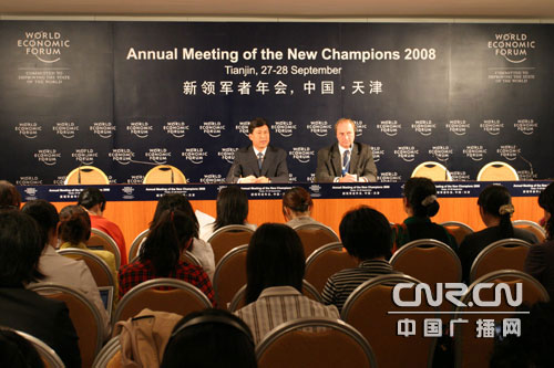 天津市常委、濱海新區(qū)管委會(huì)主任茍利軍(左一)詳細(xì)的做了天津?yàn)I海新區(qū)發(fā)展的介紹