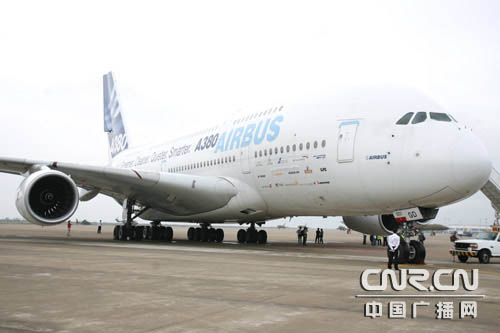 有“綠色巨人”之稱的空客A380飛機(jī)今天上午在珠海為第七屆中國航展做了一次優(yōu)雅的飛行表演。