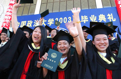 2003年6月24日,中國政法大學(xué)2003屆優(yōu)秀畢業(yè)生在畢業(yè)典禮后合影。當(dāng)日,中國政法大學(xué)舉行畢業(yè)典禮,2000多名畢業(yè)生即將投身祖國建設(shè),其中5名同學(xué)將赴中西部地區(qū),進(jìn)行為期一年的扶貧支教活動(dòng)。