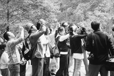 1978年以前,照相、錄像還是一種相當(dāng)奢侈的消費活動,很少有人擁有相機,而今數(shù)碼相機和攝像機在中國大地上已非常普及。圖為游客在景區(qū)照相。