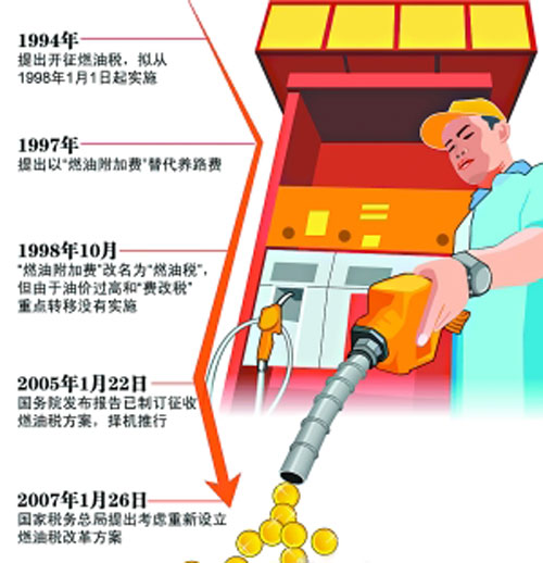 早在2001年1月,時(shí)任國(guó)家稅務(wù)總局局長(zhǎng)的金人慶就透露,燃油稅出臺(tái)工作已就緒,將擇機(jī)出臺(tái)。到了2005年1月,前國(guó)家稅務(wù)總局局長(zhǎng)謝旭人又透露,燃油稅改革方案經(jīng)過(guò)研究已有初步意見(jiàn)。再到2006年舉行的全國(guó)財(cái)政工作會(huì)議上,當(dāng)時(shí)已調(diào)任財(cái)政部部長(zhǎng)的金人慶又一次公開(kāi)表示,中國(guó)將在2007年適當(dāng)時(shí)機(jī)公布燃油稅改革計(jì)劃并加以實(shí)施。但轉(zhuǎn)眼兩年過(guò)去,改革依舊“待字閨中”。