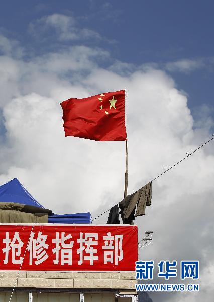 8月19日,在舟曲縣搶險救災(zāi)的一家通訊公司將五星紅旗豎立在公司指揮部樓上。行走在甘肅舟曲災(zāi)區(qū),總有一抹醒目的紅映入眼簾:民房上、帳篷旁,在災(zāi)民安置點、各救災(zāi)單位,處處可見鮮艷的國旗和黨旗迎風飄揚,鼓舞人心,給人力量。