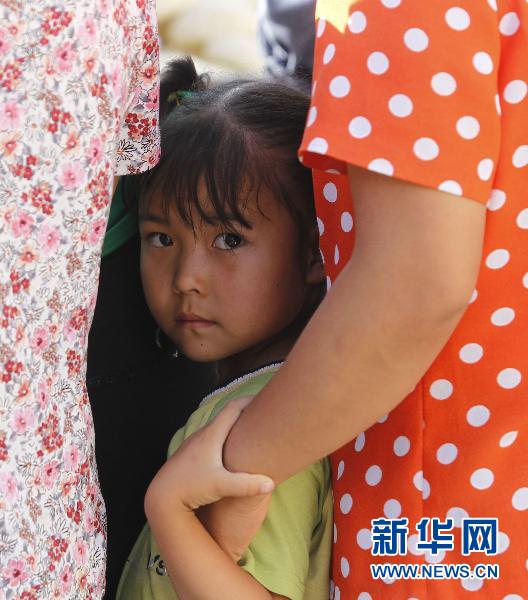 8月19日,在舟曲一個災(zāi)民安置點(diǎn),一名小女孩在排隊(duì)打飯。