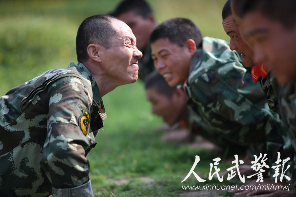 體能訓(xùn)練,常跟戰(zhàn)士比一比 圖片來(lái)源:人民武警報(bào)