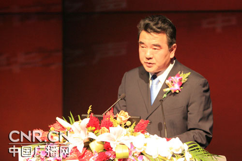 中央人民廣播電臺臺長王求在發(fā)布會上致辭(中廣網(wǎng)記者紀樂樂 陳曉冉 攝)