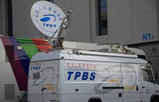 媒體轉播車集結會場外