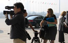 中國之聲記者焦瑩在準備連線稿