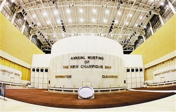 天津北方網(wǎng)訊:隨著2010天津夏季達沃斯論壇開幕進入倒計時,天津梅江會展中心內(nèi)部以藍色為基調(diào)的主會場演講臺、新領軍者村、貴賓室等已搭建布置完畢,媒體工作區(qū)等會場設施進入了后期布置階段。本屆達沃斯論壇將以一流的設施、一流的環(huán)境、一流的服務給中外嘉賓留下深刻的印象。