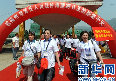資料圖片:游客在福州馬尾港登輪赴臺灣旅游。新華社記者 張國俊 攝