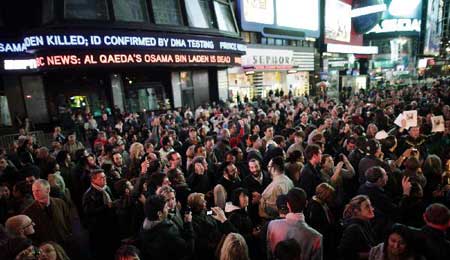 5月2日,人們在紐約時報廣場慶;亟M織頭目本·拉丹被擊斃。