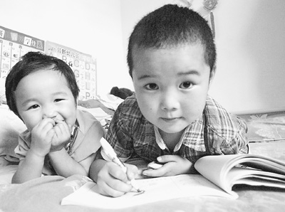 一年后,記者幾經(jīng)打聽(tīng)來(lái)到姚國(guó)亮的家中,他正趴在床上教已經(jīng)兩歲多的妹妹涂鴉。小國(guó)亮的媽媽說(shuō),“我們兩口子有時(shí)候出門(mén)去忙生意,一離開(kāi)就是大半天,都是他在家照顧妹妹!