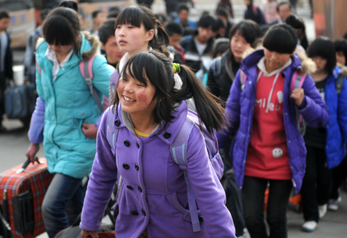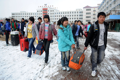 當(dāng)日,在甘肅省交通廳的統(tǒng)一組織下,舟曲一中1200多名學(xué)生在家鄉(xiāng)度過寒假后乘坐巴士返回蘭州,開始新學(xué)期的學(xué)習(xí)生活。新華社記者 聶建江 攝