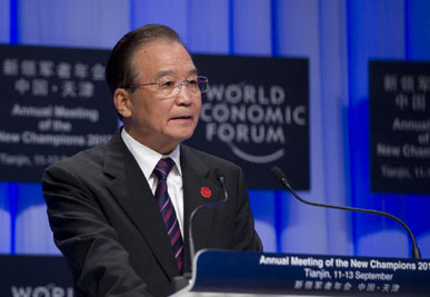溫家寶出席第六屆夏季達沃斯論壇開幕式并致辭