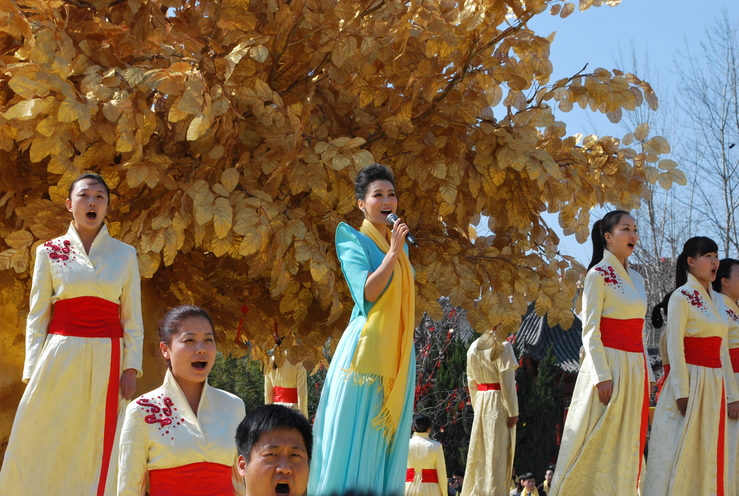 著名歌唱家譚晶在金色的祈福樹下領(lǐng)唱《黃帝頌》