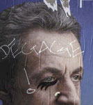 近日,法國大選正如火如荼地進(jìn)行,一些候選人的大幅宣傳畫隨處可見。很不幸的是,薩科齊等人的宣傳畫不知被誰涂鴉。近日,法國大選正如火如荼地進(jìn)行,一些候選人的大幅宣傳畫隨處可見。