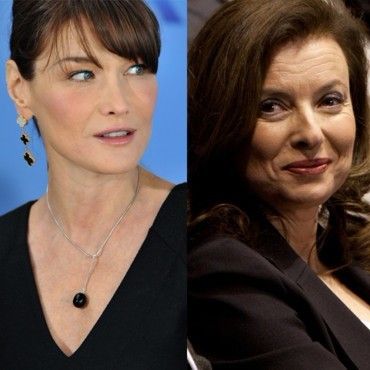 法國(guó)現(xiàn)任總統(tǒng)薩科齊夫人布魯妮(左),法國(guó)社會(huì)黨總統(tǒng)候選人奧朗德的伴侶瓦萊麗·特里埃爾維勒(右)