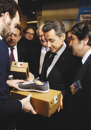 。苍拢比,薩科齊出席在巴黎舉行的企業(yè)家展覽會,向一位參展商詢問企業(yè)生產(chǎn)情況。 新華社/法新
