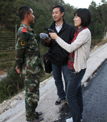 中央臺記者孫杰、王嫻采訪武警交通部隊(duì)?wèi)?zhàn)士