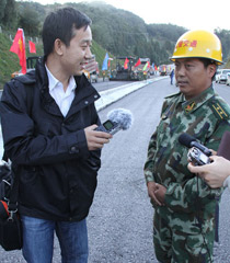 中央臺記者梁永春采訪武警交通部隊(duì)官兵