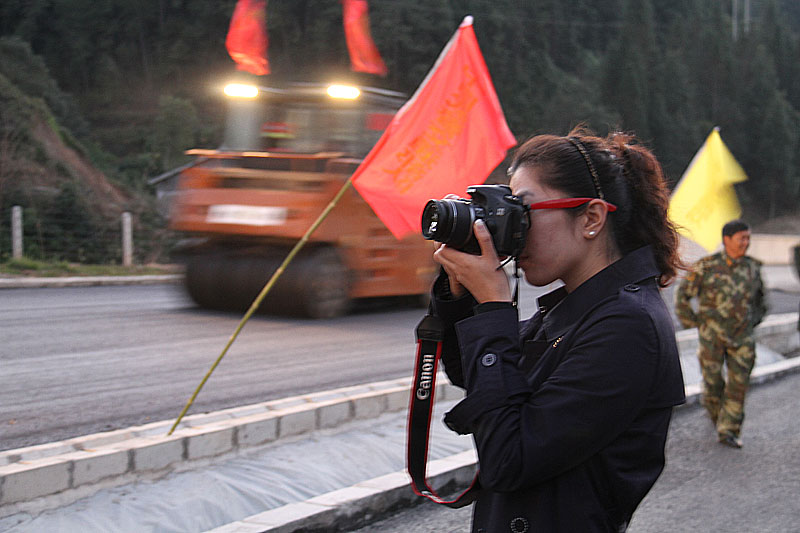 中央臺記者劉鵬采訪中拍攝新聞