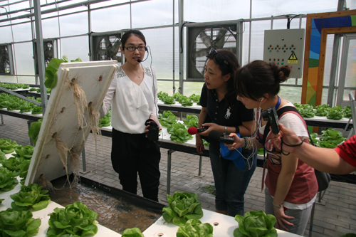 華夏之聲記者陳燕(中)、宋雪(右)了解有機(jī)蔬菜種植技術(shù)