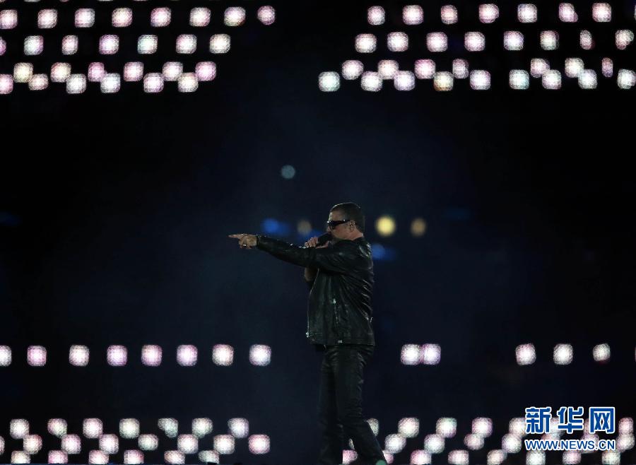 2012年8月12日,第三十屆夏季奧林匹克運(yùn)動(dòng)會(huì)閉幕式在倫敦奧運(yùn)會(huì)主體育場舉行。圖為喬治·麥克在閉幕式上演唱。 新華社記者 沈伯韓 攝