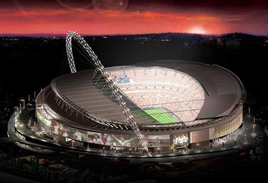 溫布利體育場新建的拱頂有130米高,直沖云霄。這一高度是舊溫布利體育場的塔高的四倍。體育場的每一個(gè)座位都能將整個(gè)球場收入眼底,座位之間相隔距離較寬,能讓觀眾在觀看比賽的同時(shí)放松雙腿。