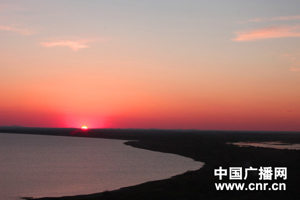 夕陽中的向海自然保護區(qū)水庫(記者周平 攝)