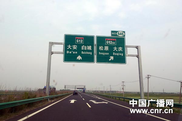 做稿到一點(diǎn),五點(diǎn)半爬起來(lái)趕往向海。車上一覺(jué)醒來(lái),這個(gè)路標(biāo)一下觸動(dòng)了我。
