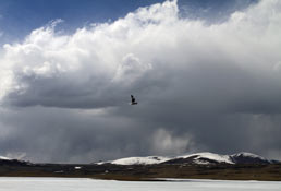 經(jīng)常在青藏高原工作,見到野生動(dòng)物對我而言并不是什么新的事情,但是這次去麥地卡的途中,在同一區(qū)域內(nèi)見到多種不同種類的野生動(dòng)物卻是頭一次。赤麻鴨、斑頭雁在去往麥地卡的途中隨處可見。麥地卡濕地內(nèi)縱橫遍布著108個(gè)大小湖波,湖面上不時(shí)會(huì)飛過各種色彩艷麗、體型矯健,但是卻叫不上名字的水鳥。在這里我第一次知道了鵟這種高原猛禽。大開眼界,可以說是這次到麥地卡采訪的最初感受。