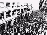 北京汽車制造廠生產(chǎn)的第一批北京牌和井岡山牌轎車,出現(xiàn)在1958年10月1日的國慶游行行列中群眾踴躍購買公債,支持國家建設(shè)。更為深刻的變革,是社會(huì)主義市場經(jīng)濟(jì)體制的確立,極大地激發(fā)了人民群眾投身社會(huì)主義現(xiàn)代化建設(shè)的熱情,中國經(jīng)濟(jì)創(chuàng)造了舉世矚目的奇跡。
