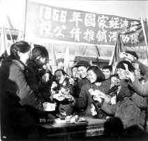 群眾踴躍購(gòu)買公債,支持國(guó)家建設(shè)。(1956年)