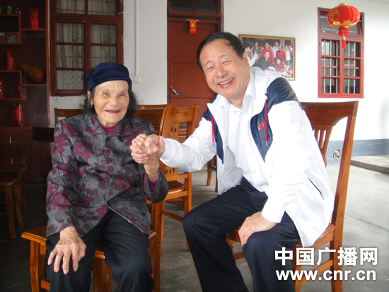 在上杭縣古田鎮(zhèn)五龍村,紅軍烈屬、百歲老人張?zhí)泼没貞浧?010年春節(jié)與胡錦濤總書記見面的場景,老人露出了歡心的微笑。