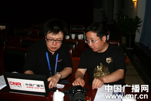 中央臺記者肖曉冬和新浪網(wǎng)龍亞鵬溝通活動細(xì)節(jié)